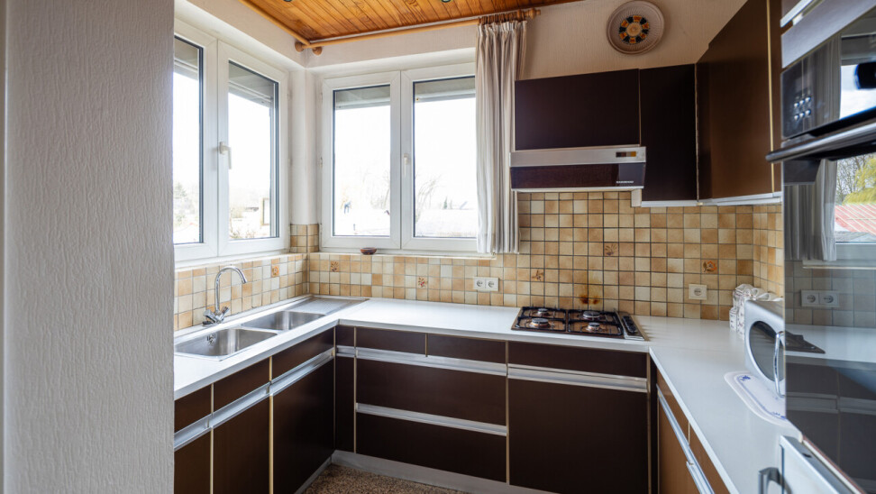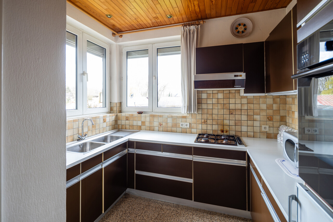 On the first floor, you will find a spacious and particularly bright living area with an adjoining kitchen, creating a pleasant and practical layout.