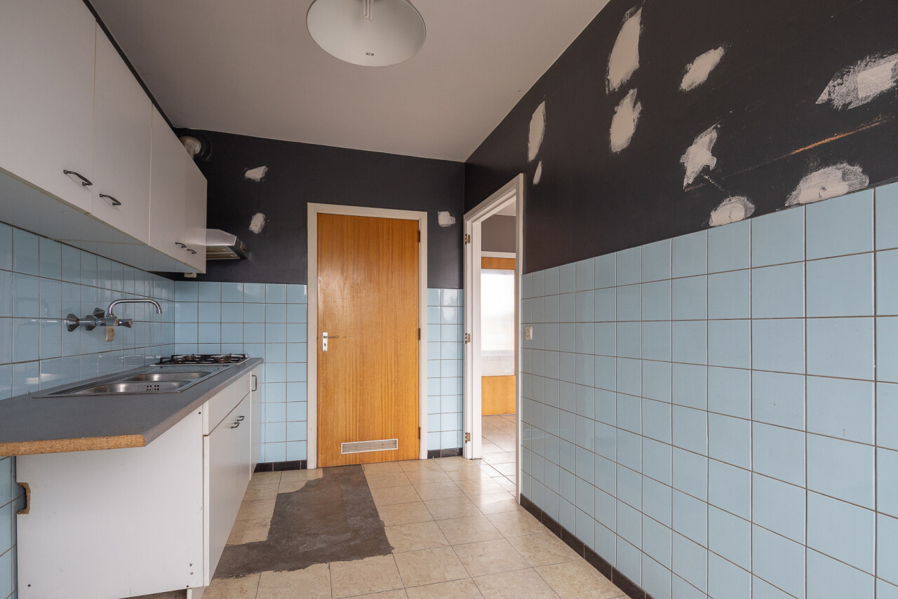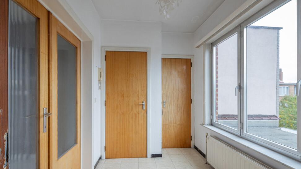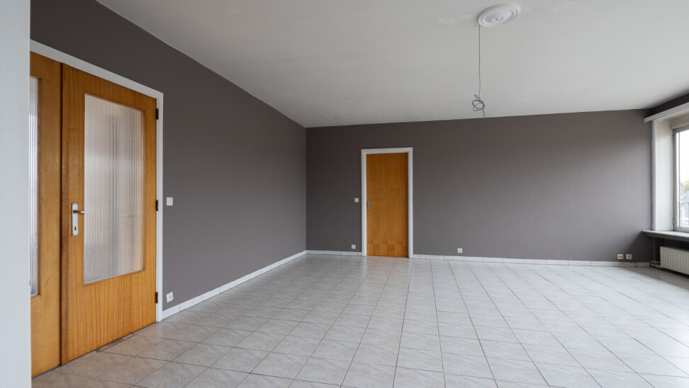 Ontdek dit te renoveren appartement op de derde verdieping van 114 m² (volgens EPC), een ideale kans voor wie op zoek is naar een ruime woning om volledig naar eigen smaak in te richten. Het appartement beschikt over een ruime en lichtrijke leefruimte, twee grote slaapkamers, een badkamer die voorlopig voorzien is van een ligbad, een apart toilet en een terras.