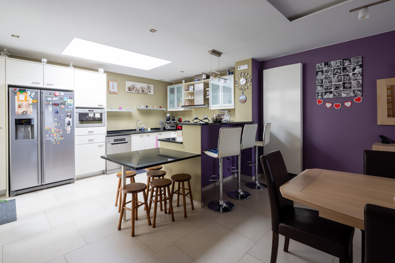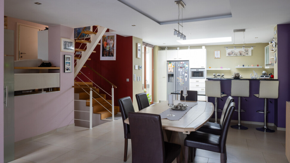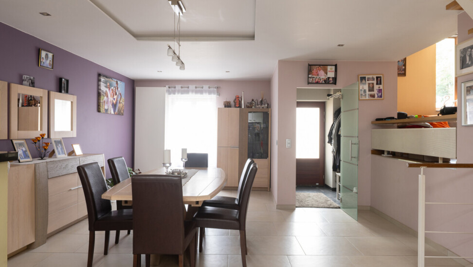 Met een bewoonbare oppervlakte van 191 m² (volgens EPC) biedt de woning ruimte en sfeer. De gezellige eetkamer vormt het hart van het huis, met aansluitend een volledig uitgeruste keuken. Enkele trappen hoger wacht een lichtrijke woonkamer, ideaal om te ontspannen.