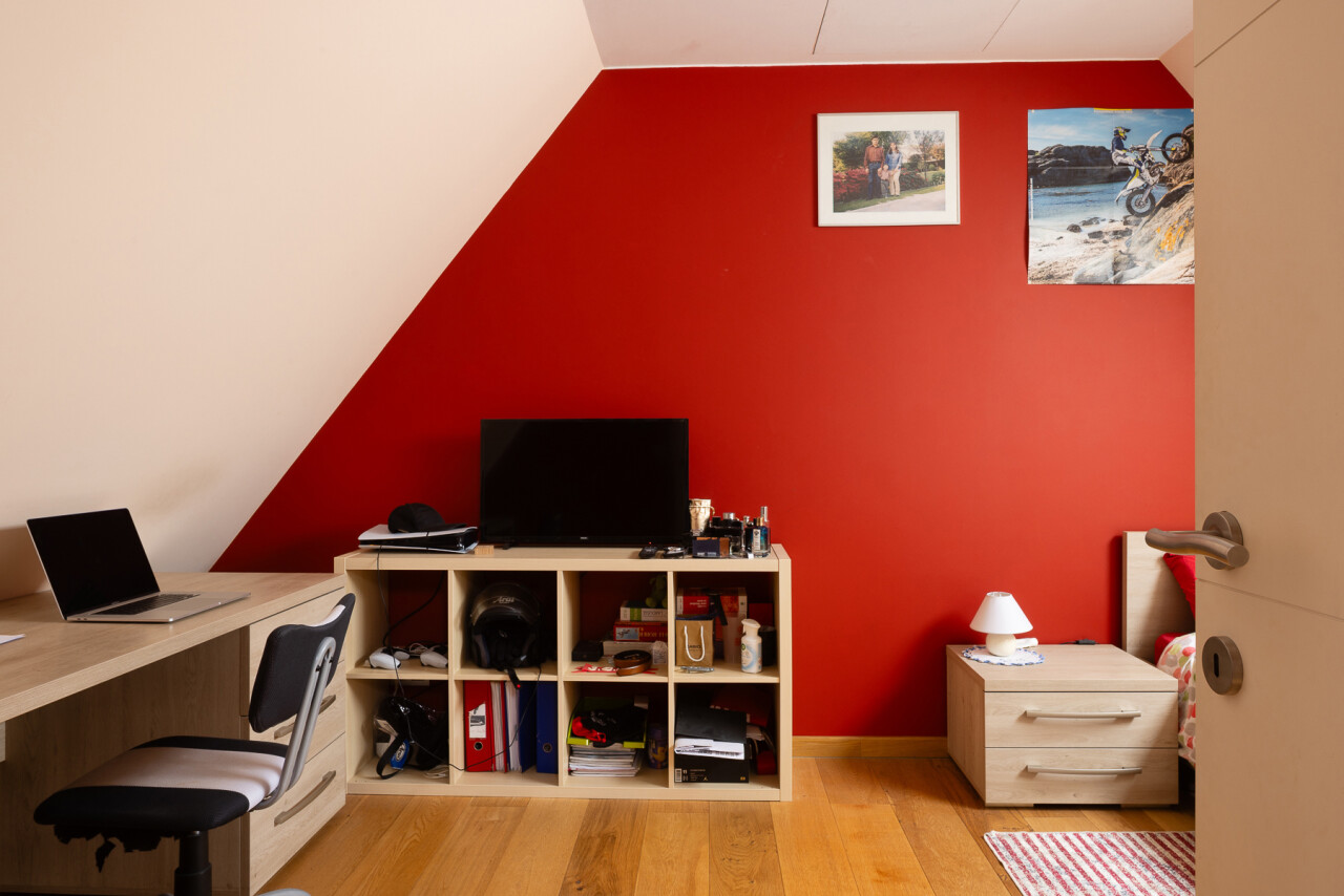 De woning telt 5 slaapkamers, verdeeld over verschillende niveaus, en 3 badkamers (2 met douche, 1 met ligbad). Achteraan is er een koer, een fijne buitenruimte met privacy. De kelder biedt extra bergruimte. Parkeren is geen probleem dankzij een garage en twee staanplaatsen.