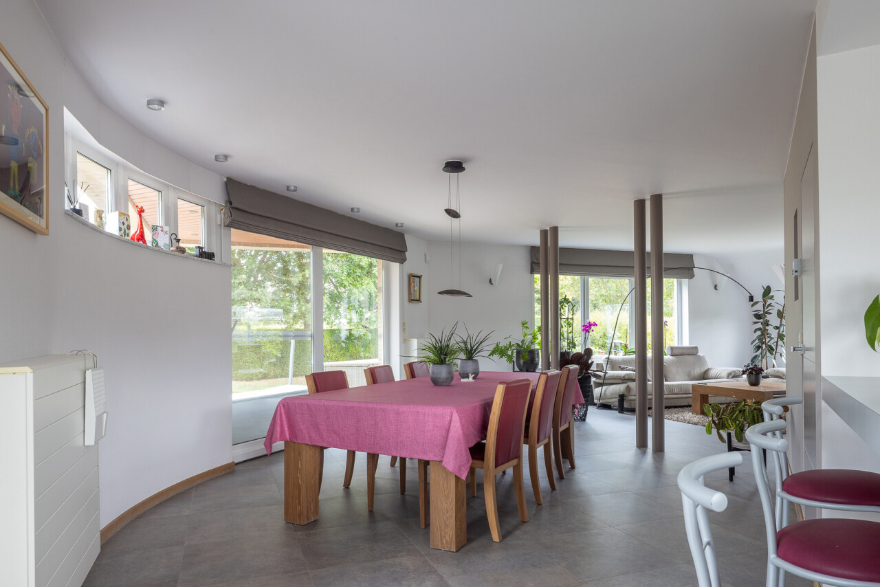 Bij het binnenkomen word je verwelkomd in een ruime open leefruimte die naadloos overgaat in een gezellige eetkamer en een volledig uitgeruste open keuken met aansluitende berging. Grote raampartijen zorgen voor een overvloed aan natuurlijk licht en een prachtig zicht op de tuin en het achterliggende landschap.